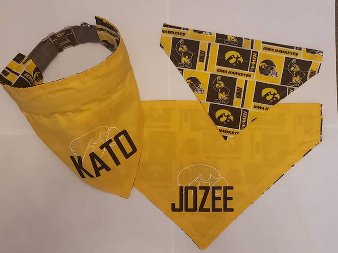 Bandanas can be ordered in sizes x-small up to xx-large. We also offer personalization that can include graphics and/or names.